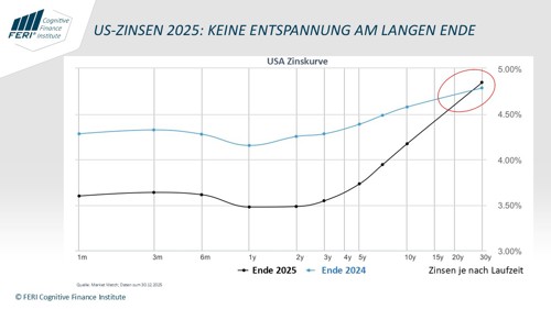 The US yield curve at the end of 2025 illustrates the central dilemma: although the Fed lowered key interest rates several times in 2025, interest rates on 30-year US bonds were actually higher than the previous year's level at 4.86%. This picture is more than an anomaly – it creates a serious political problem for Donald Trump.